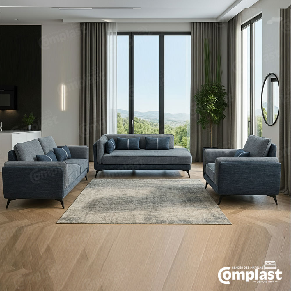 Discover the Rhea sofa, a true masterpiece of comfort and design that adapts to your desires and your interior. With its modular configuration of 3-seater + 2-seater + 1-seater, this sofa offers you an optimal relaxation experience for the whole family or with friends. Its modern and refined design, combined with impeccable craftsmanship, makes it an essential piece of high-end furniture.