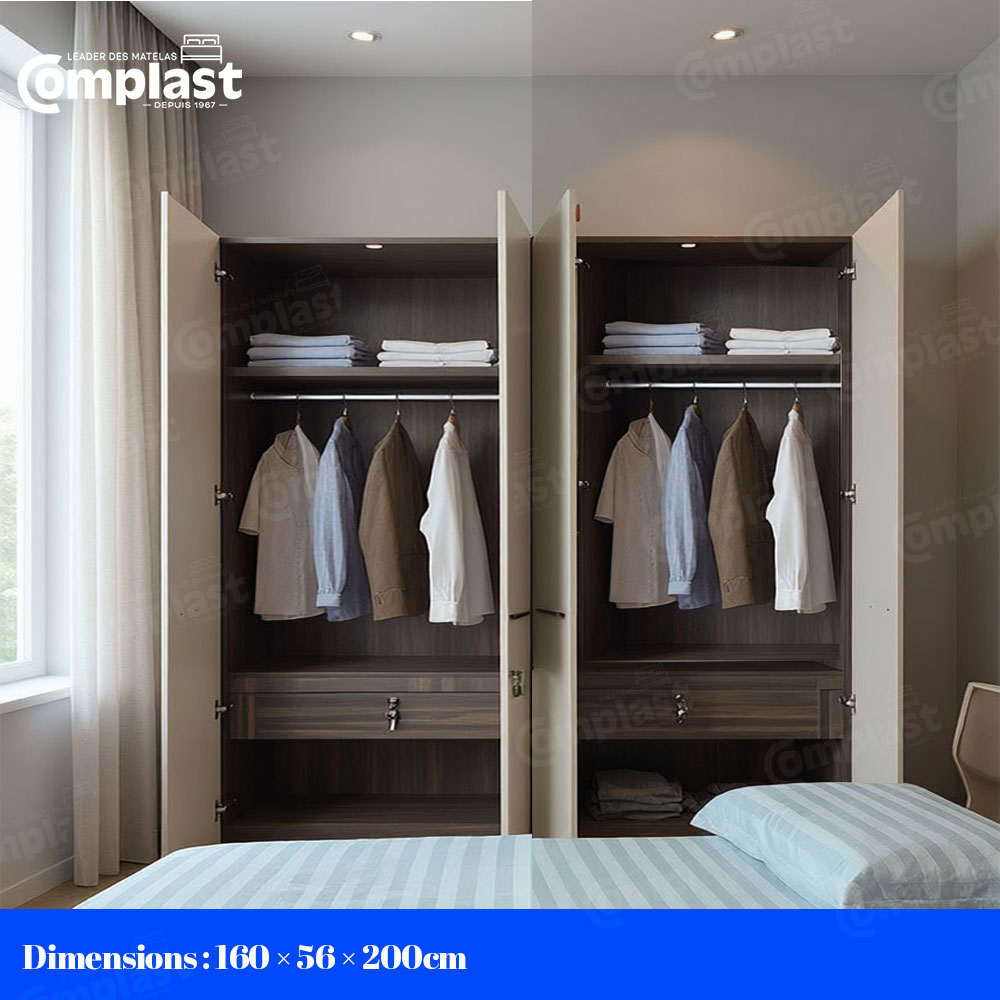 Une Garde Robe 5,4,3 et 2 portes qui vous offre différentes possibilités pour ranger vos vêtements, elle est conçue pour répondre à vos spécifications individuelles, il s’agit d’une garde-robe conçue pour offrir à la fois l’élégance et la fonctionnalité.