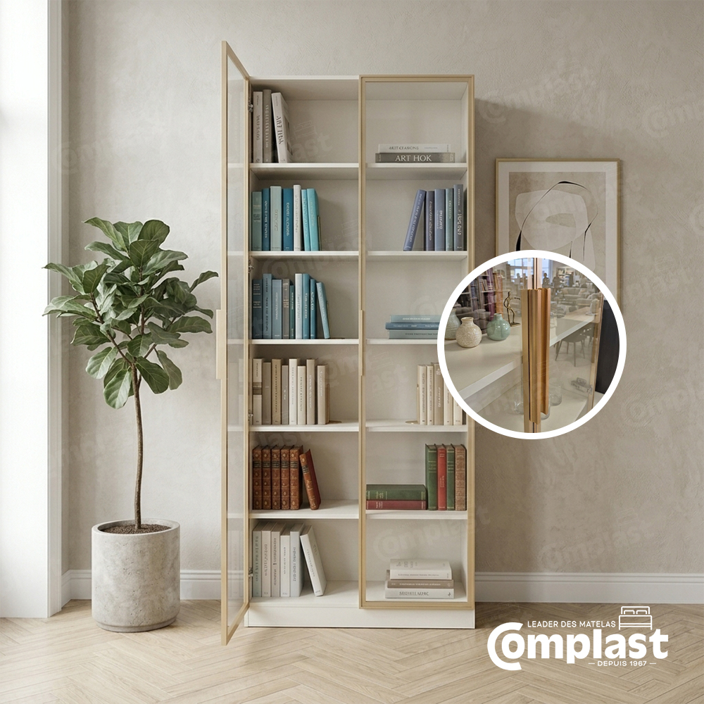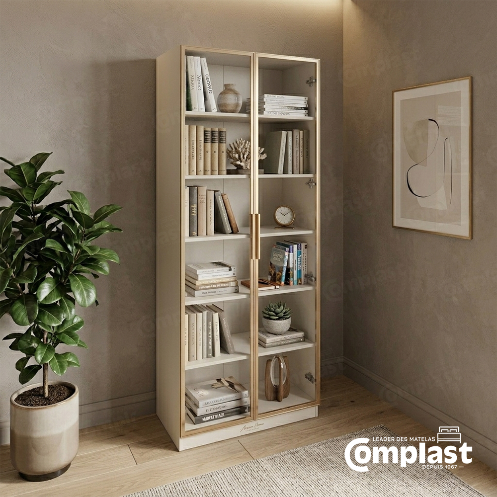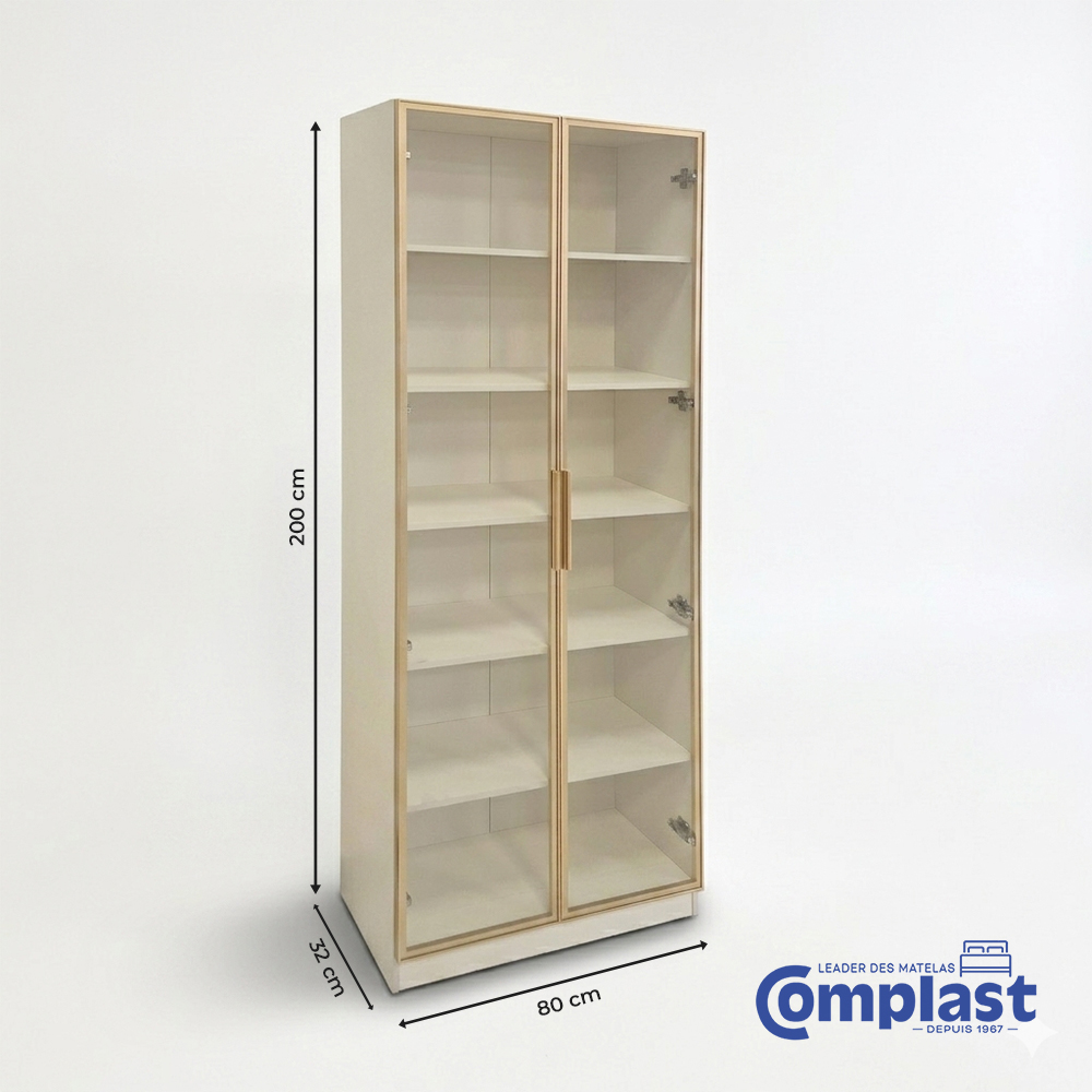 Cette vitrine élégante et moderne apportera une touche de sophistication à n’importe quelle pièce. Son design épuré et ses étagères en verre offrent un espace idéal pour exposer vos livres, objets décoratifs et souvenirs précieux. Son cadre doré ajoute une note de luxe discrète. Une véritable pièce maîtresse pour votre intérieur.