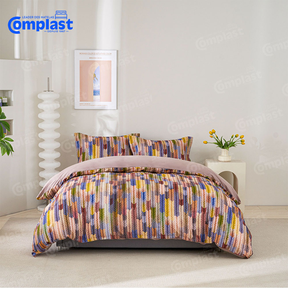 Complast propose différentes tailles et designs de couette Jelly, et elle est accompagnée d’un drap-housse et de deux taies d’oreiller.